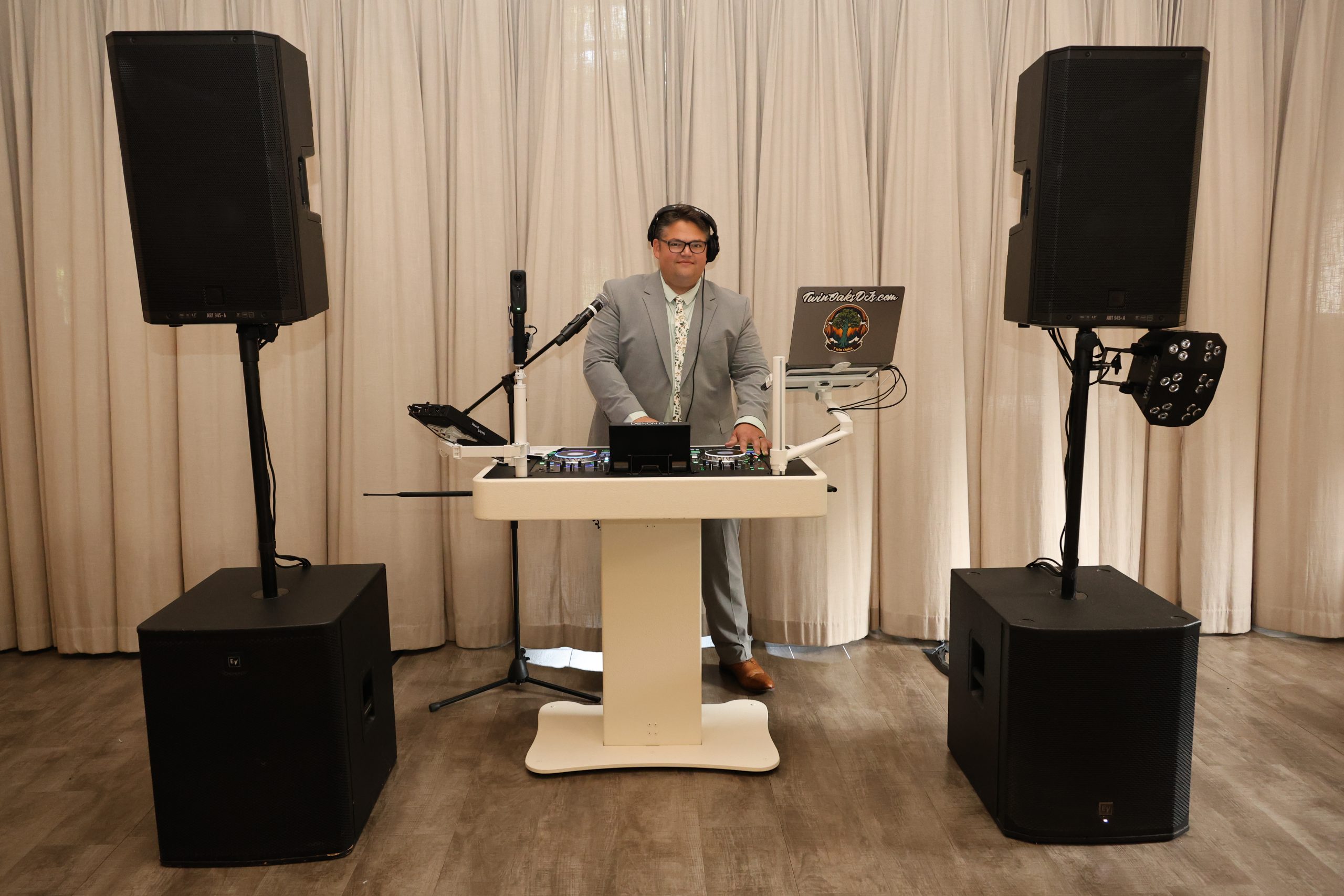 At Twin Oaks Entertainment, also known as Dygos Brothers DJs, we specialize in creating unforgettable moments through music. Whether it’s a wedding, birthday party, anniversary, corporate event, or school dance, we bring a perfect blend of experience, energy, and personalized service to every occasion. Our passion is crafting the perfect soundtrack that keeps the dance floor packed. We offer a full range of services to make your event unforgettable. Our expert DJs will keep the energy high and the dancefloor packed with expertly curated music tailored to your taste. As experienced MCs, we’ll keep your event running smoothly with seamless announcements and engaging crowd interaction. We also provide custom lighting setups to create the perfect atmosphere, from elegant and timeless to lively and vibrant. For added fun, our photobooth service allows your guests to capture memories and take home personalized keepsakes. Whatever your event, we’re here to provide the ultimate entertainment experience. With state-of-the-art sound equipment, creative transitions, a quick mixing style, and an ability to read the room built on more than 20 years of experience, we bring the energy needed to turn your event into an unforgettable party that will have your guests talking about it long after the last song plays. From meaningful moments to nonstop dancing, we work closely with you to customize every detail so your celebration feels effortless, exciting, and completely you!